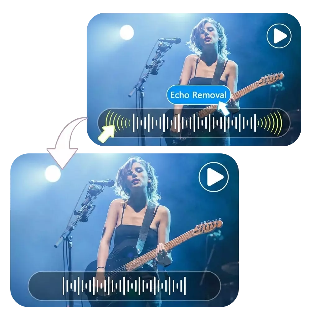 Our AI echo remover is designed to eliminate common acoustic echoes, room reverberations, and microphone feedback typically found in online meetings, recordings, or poorly treated environments.